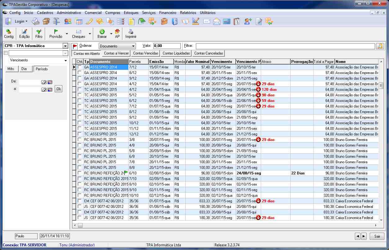 » Contas a pagar e receber por empresa;