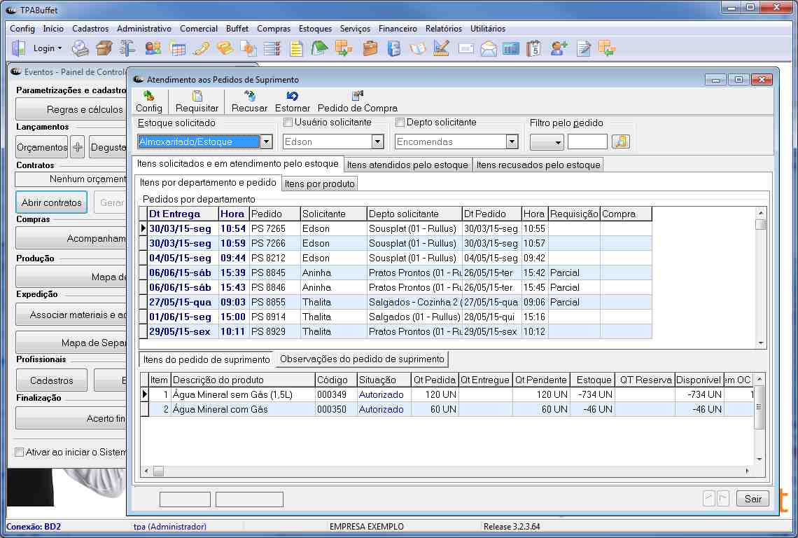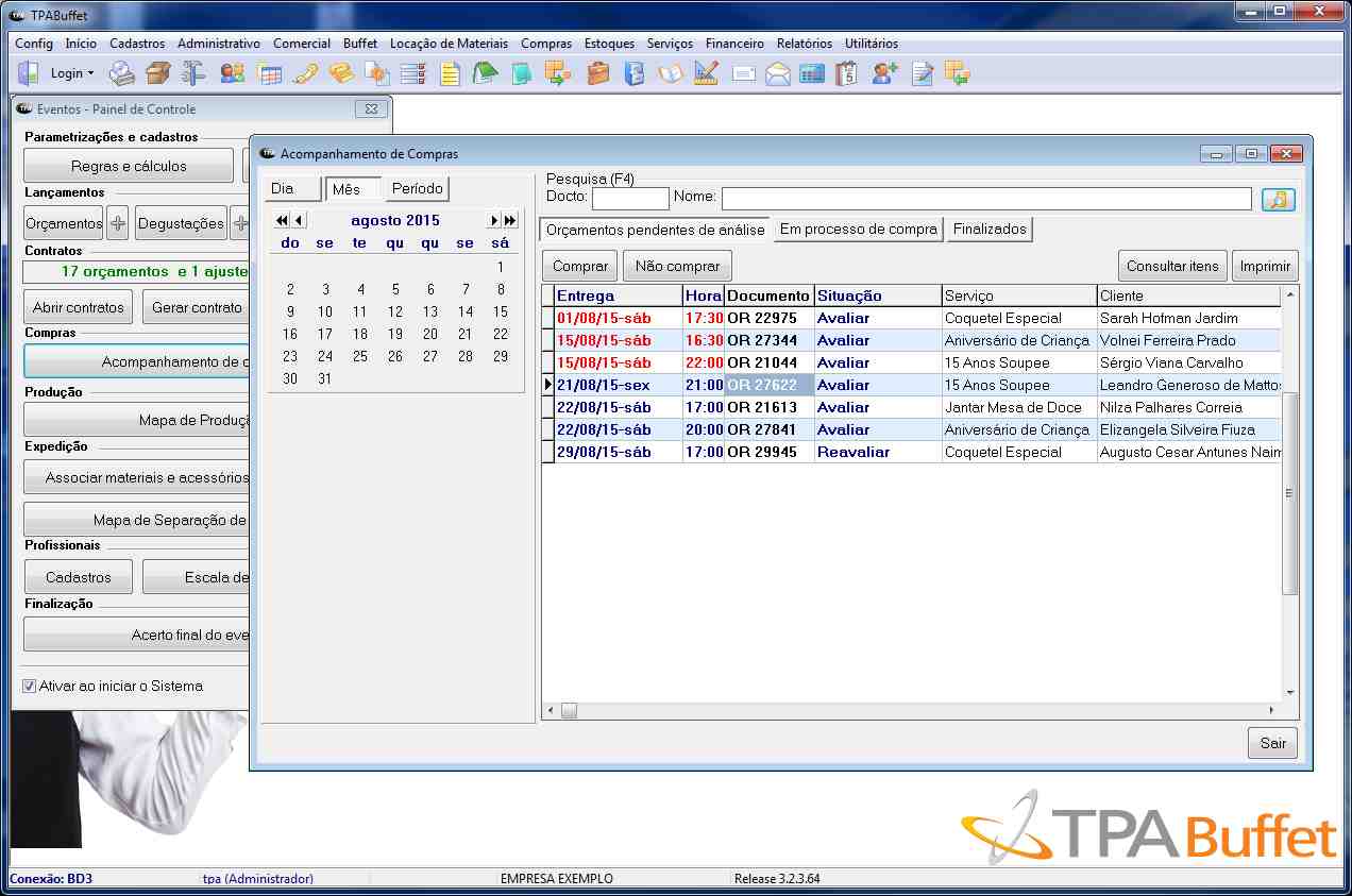 » Controle de acompanhamento de compras por evento;