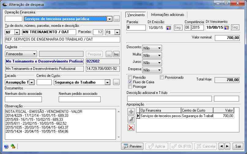 Gerenciamento total do controle financeiro corporativo com apropriação por operações financeiras e centros de custos.