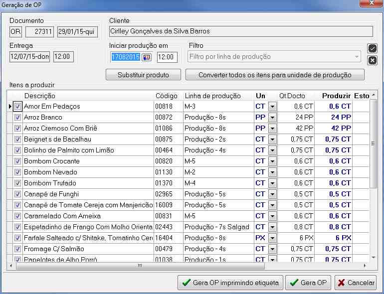 » Possibilidade de substituição de produtos antes de executar a produção;