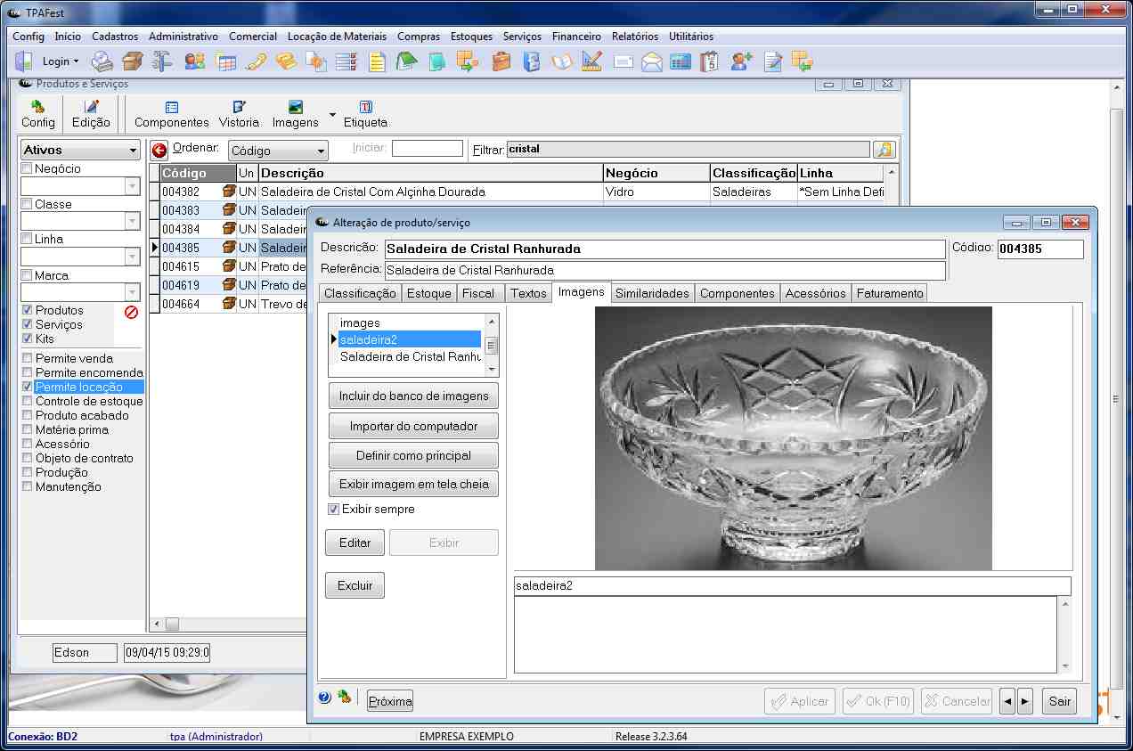 Um completo cadastro que abrange todos os itens necessário à locação de materiais para festas e eventos.